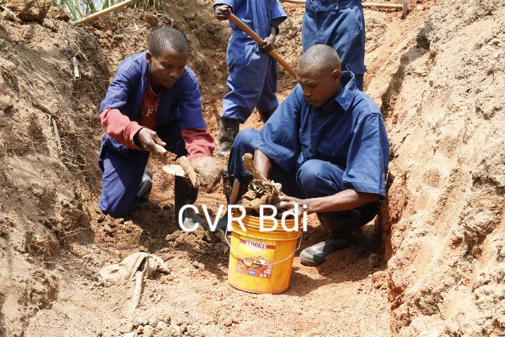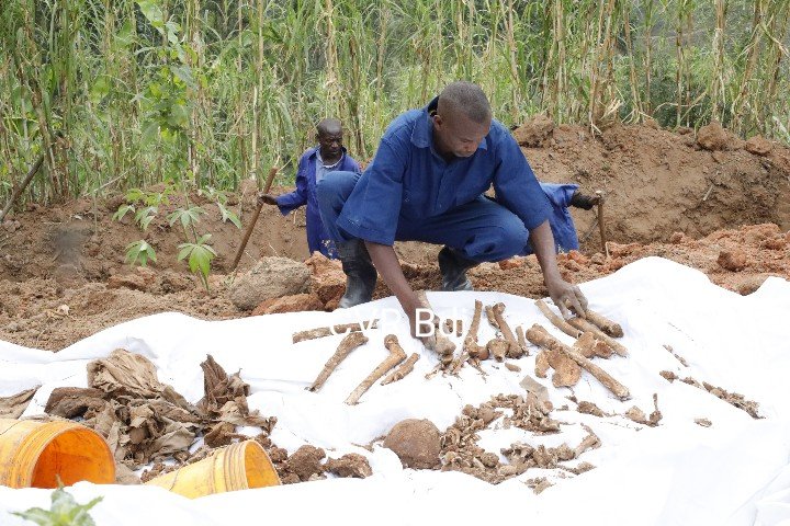 – et une exhumation d’un autre charnier dans un tranché a eu lieu en zone Muyama, colline Mabanza, sous colline Muyama, dans la propriété de M. Niyongabo Renovat.