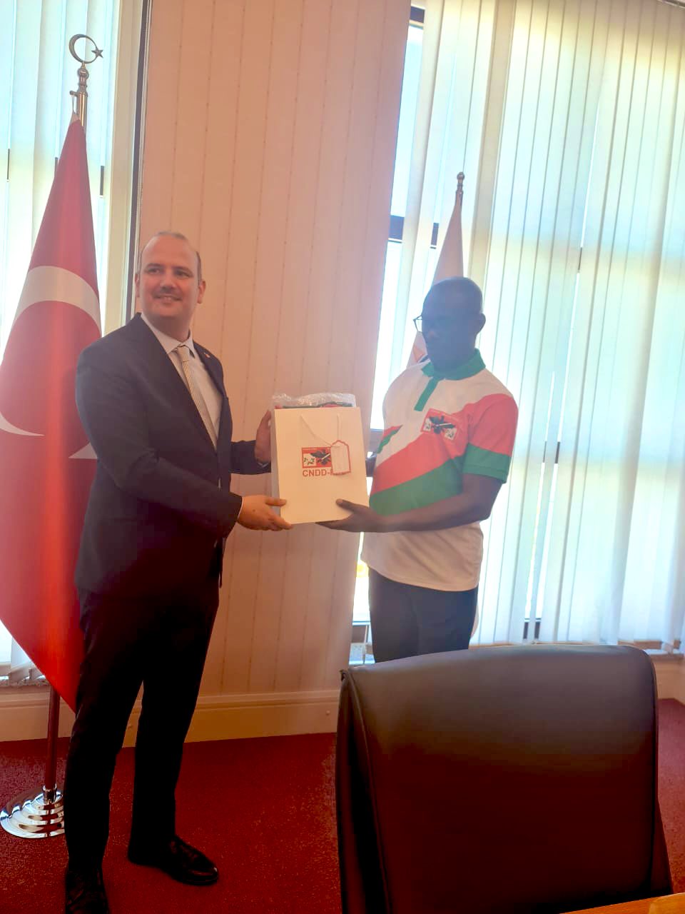 Avec Hon. Efkan Ala, Président Adjoint du Parti AKP, Chef du Département des relations internationales, une discussion s’est ouverte avec le CNDD-FDD en vue de renforcer les partenariats entre les 2 Partis, et les 2 pays au niveau des relations bilatérales.