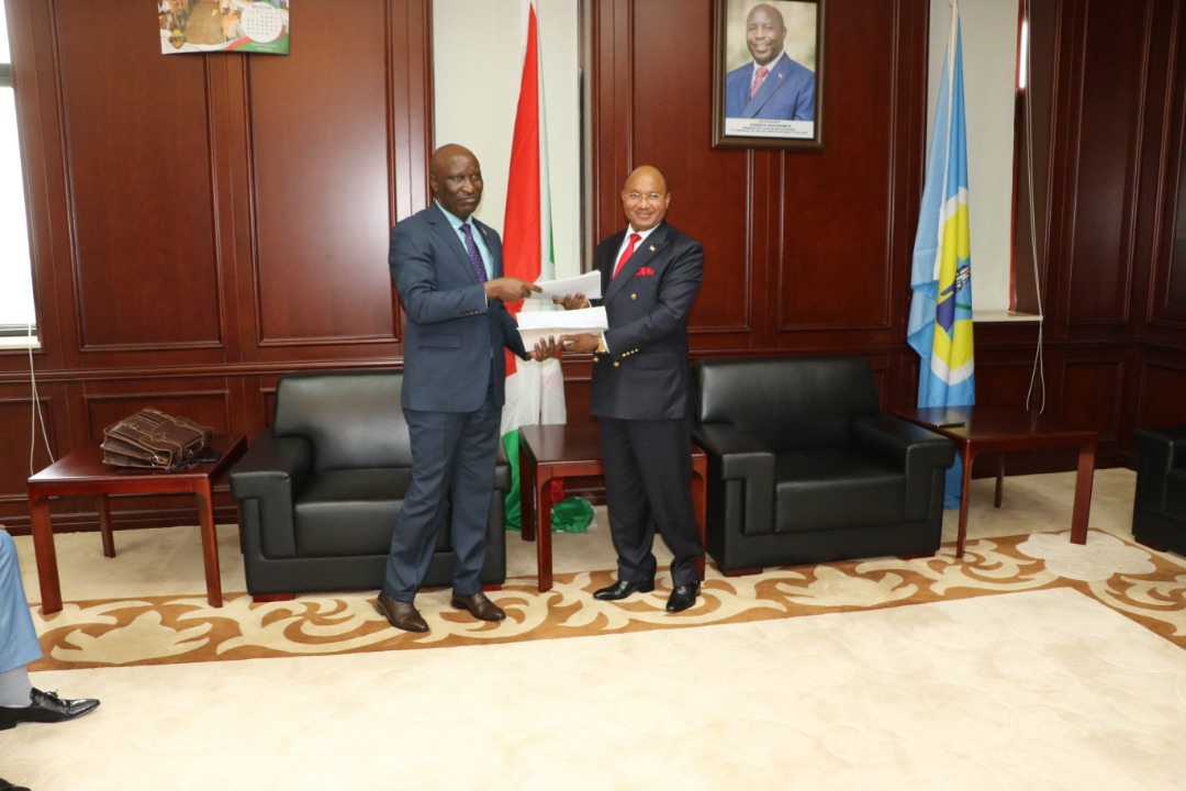 ce jeudi, dans une ambiance totalement détendue, Général de Police Bunyoni Alain Guillaume, ancien Premier Ministre du Burundi, a reçu Lieutenant Général de Police Ndirakobuca Gervais, nouveau Premier Ministre du Burundi, pour une Remise et Reprise. Les 2 officiers se donnant la main, puis se souhaitant une bonne chance dans leurs nouvelles fonctions.