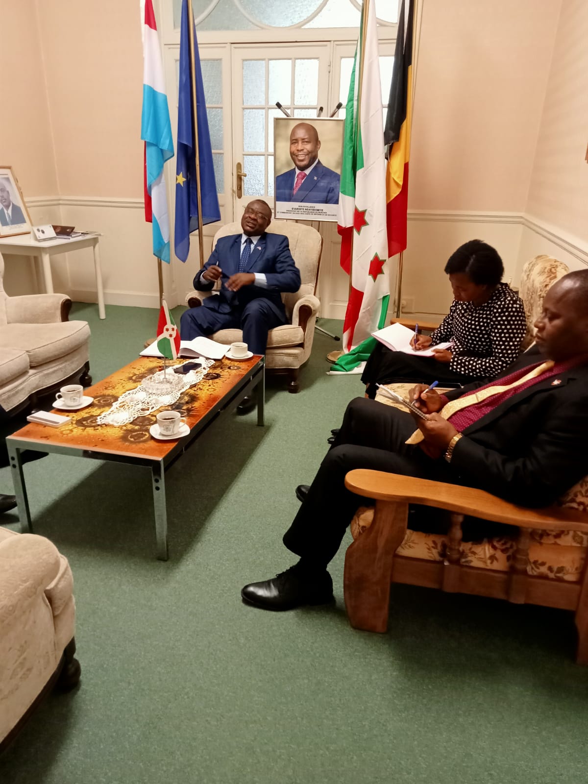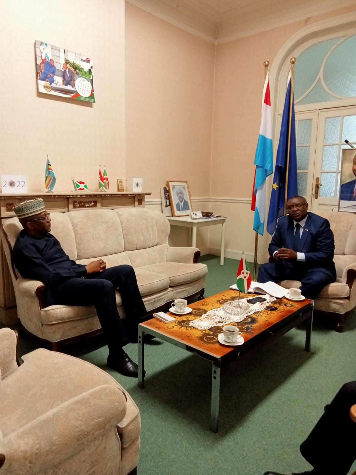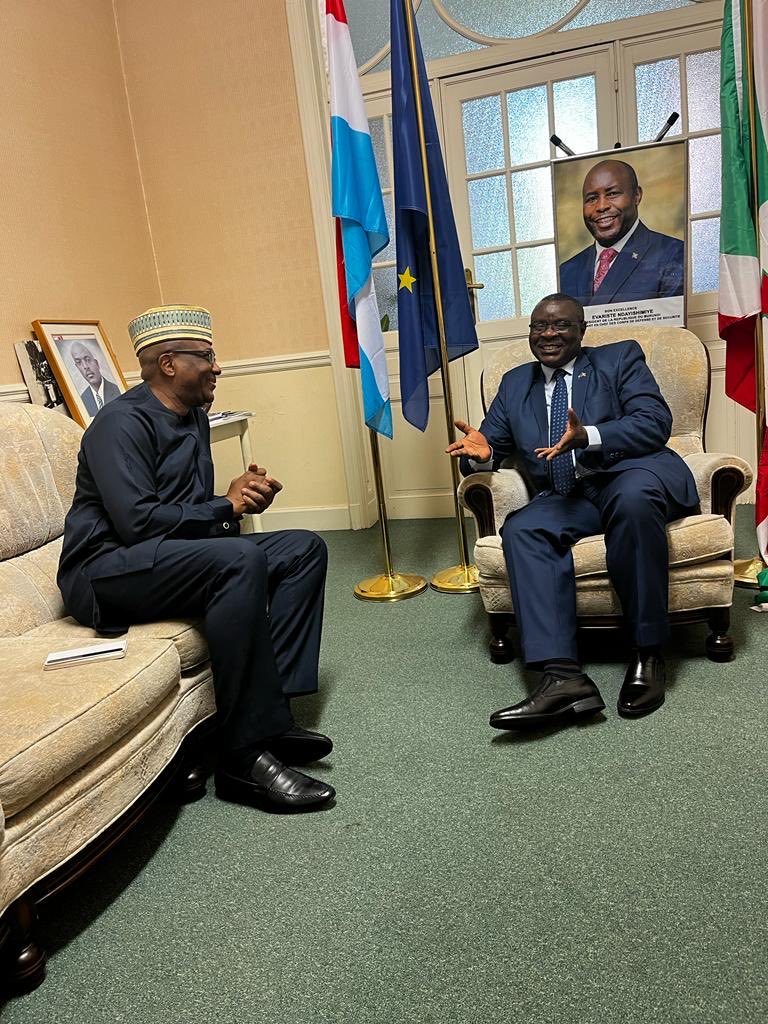 Ce lundi, dans le cadre diplomatique et panafricain, Amb. Ntahiraja Thérence , Ambassadeur du Burundi en Belgique et auprès de l’Union Européenne (UE), recevait à son bureau, dans une ambiance agréable, la visite de Amb. Obinna Chiedu Onowu, Ambassadeur de l’Etat Fédéral du Nigeria. Venu inviter le Burundi, dont sa diaspora [1], à la Conférence Internationale de la Diaspora qui aura lieu à Abuja, au Nigéria en avril 2023. Insistant sur le fait qu’il s’agit du souhait de son pays le Nigeria.