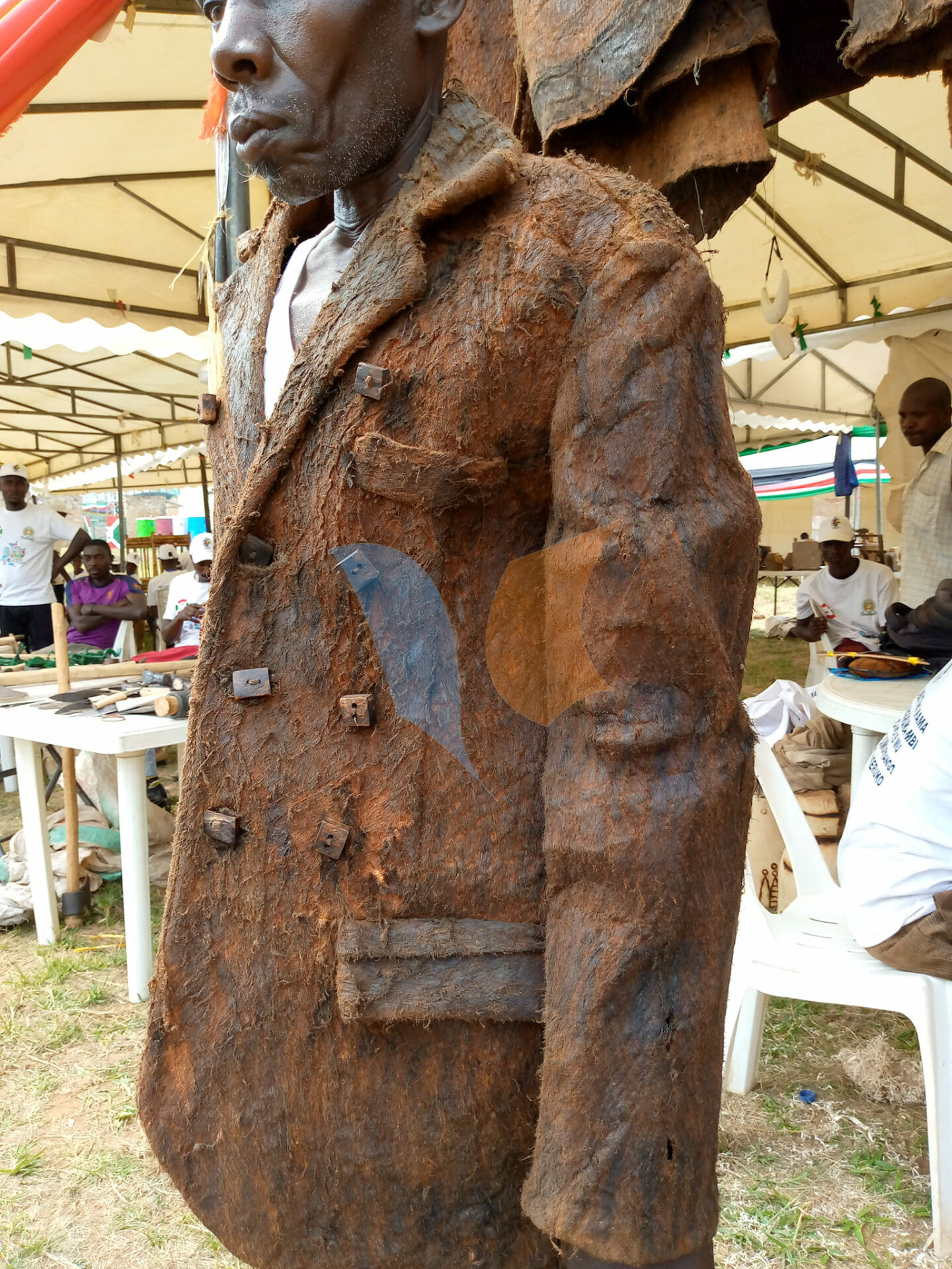 L’artisan -fabricant d’habits Manirakiza Marc de Muyebe, à Kayokwe, en province de Mwaro, fabrique des habits faits d’étoffe de ficus – impuzu y’igiti –