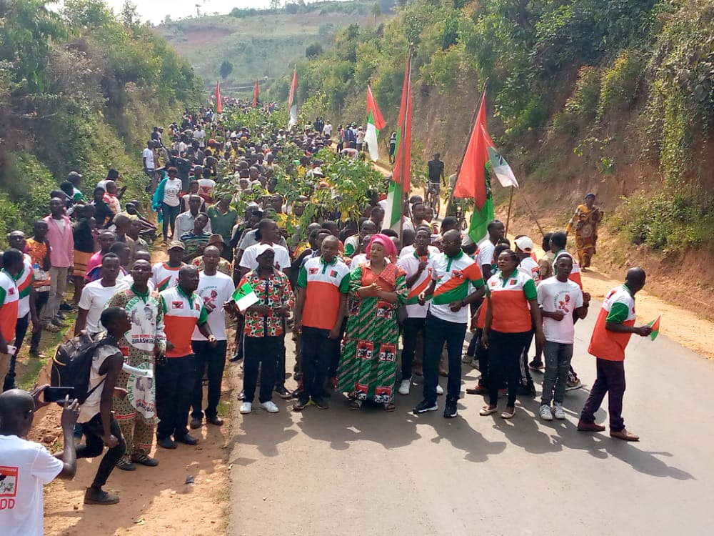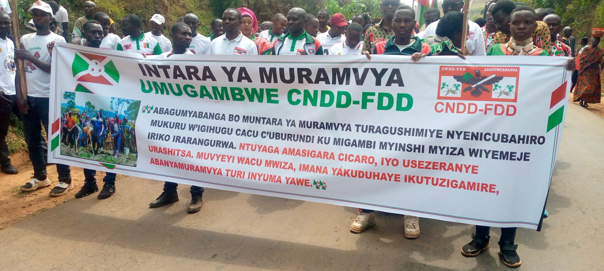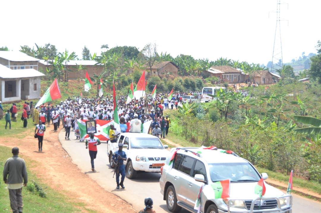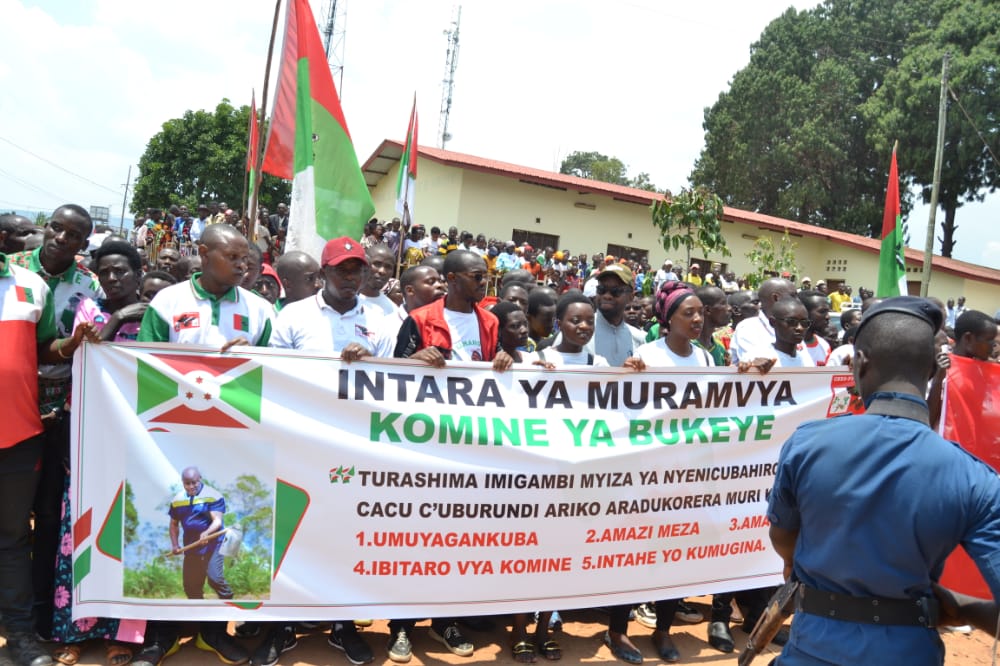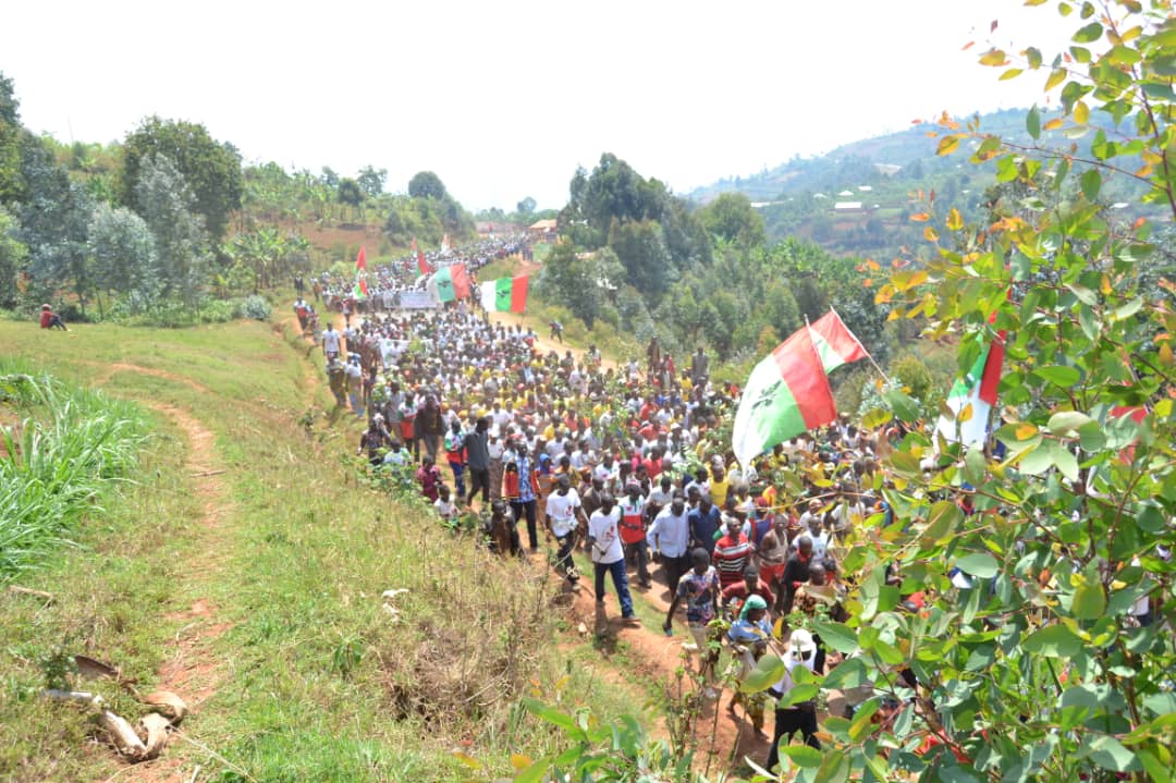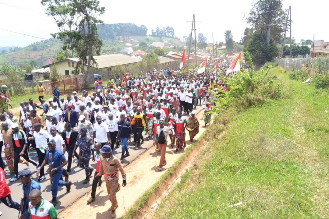 Débutée depuis la colline Masango , rehaussée par la présence de l’Hon. Ntakarutimana Joseph, Secrétaire Général Adjoint du CNDD-FDD, ce samedi, des milliers de Bagumyabanga ( nom des militants du CNDD-FDD, 1ère formation politique du Burundi ) ont défilé lors d’une marche dans les rues de Muramvya organisée par la Section Provinciale Muramvya du CNDD-FDD, soutenant la lutte pour la bonne gouvernance initiée et remerciant pour les réalisations politiques et socio-économiques en cours, S.E. Ndayishimiye Evariste ( Général Major ), Président du Burundi, et Président du Conseil des Sages du CNDD FDD. Se clôturant par le partage d’un verre de l’amitié convié aux Bagumyabanga par M. Ntawuyankira Evariste, Secrétaire Provincial Muramvya du CNDD-FDD, auquel se sont joints des membres de l’UPRONA de la localité. Saisissant l’occasion pour accueillir plus de 4000 nouveaux adhérents en provenance des différentes formations politiques présentes à Muramvya.