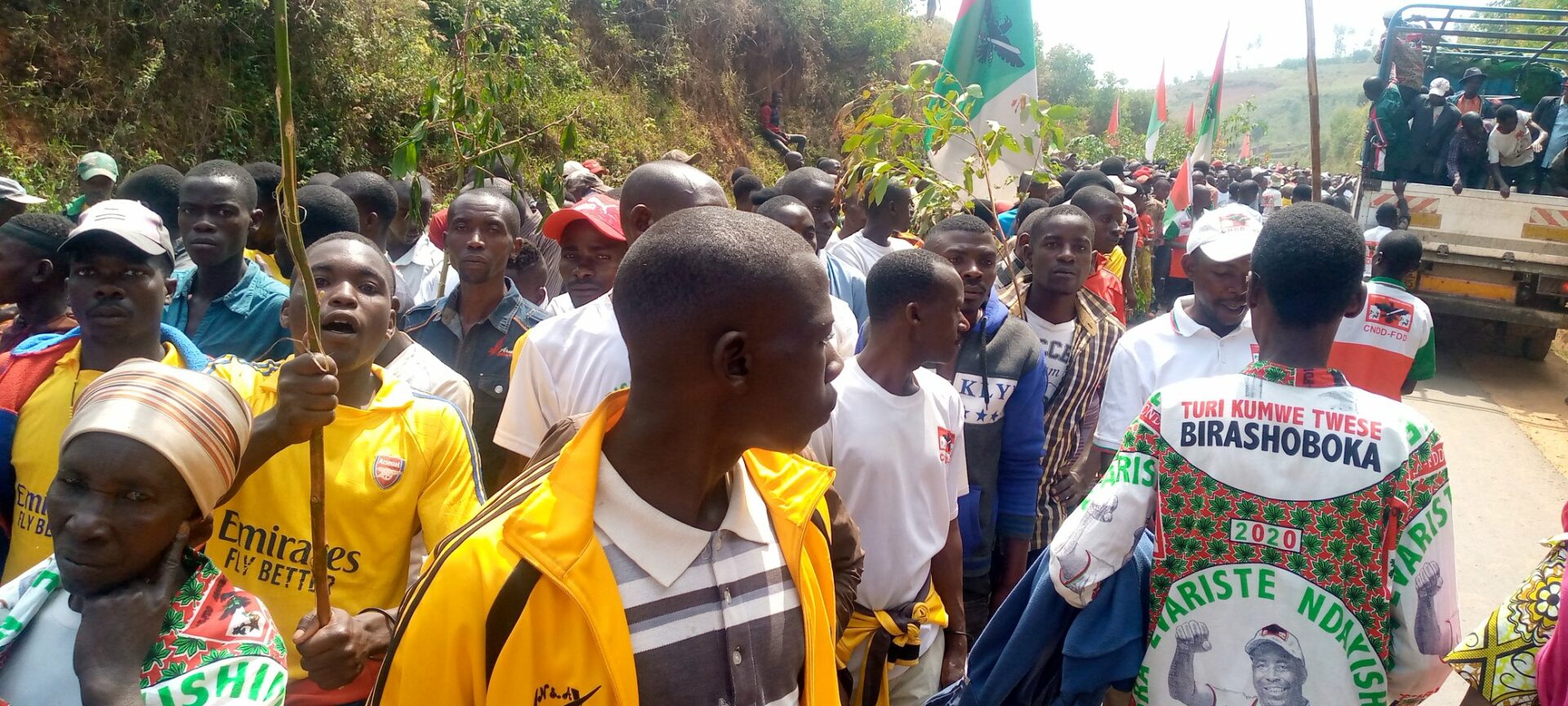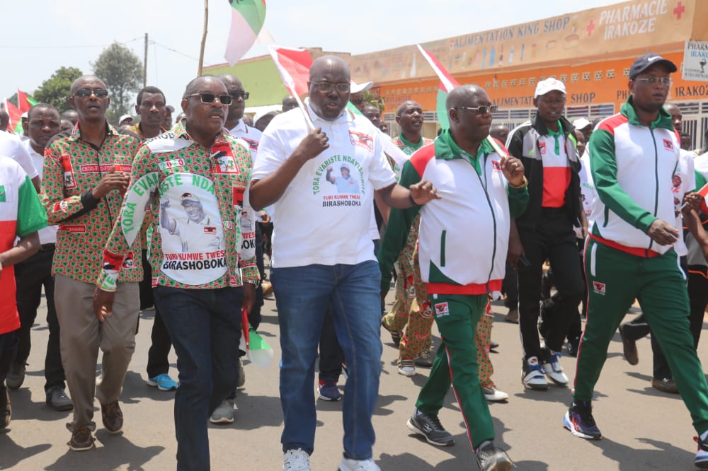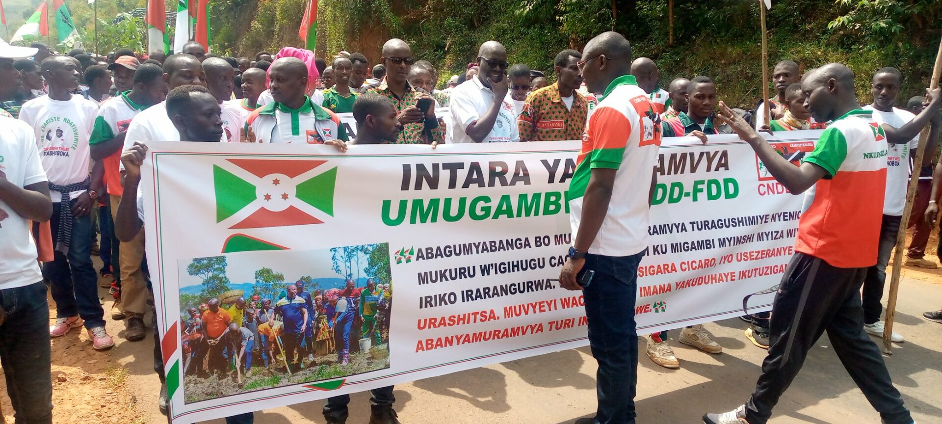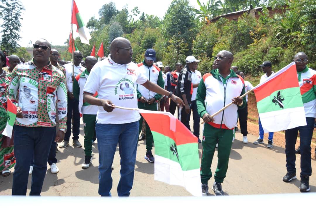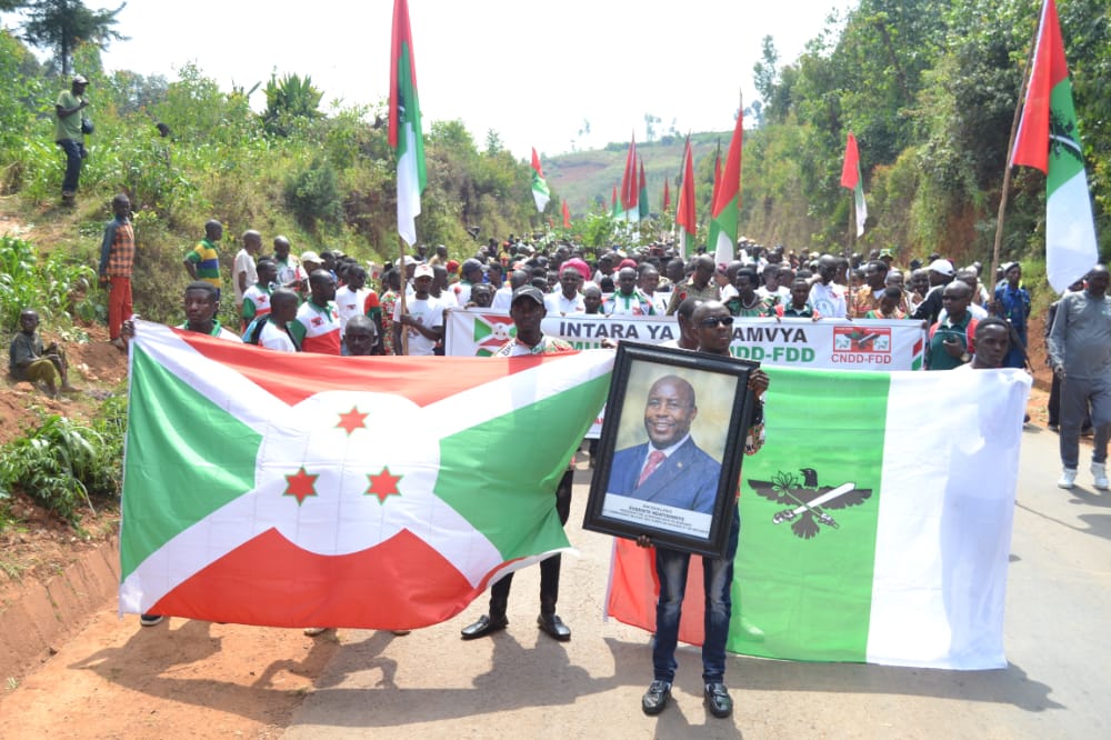 Débutée depuis la colline Masango , rehaussée par la présence de l’Hon. Ntakarutimana Joseph, Secrétaire Général Adjoint du CNDD-FDD, ce samedi, des milliers de Bagumyabanga ( nom des militants du CNDD-FDD, 1ère formation politique du Burundi ) ont défilé lors d’une marche dans les rues de Muramvya organisée par la Section Provinciale Muramvya du CNDD-FDD, soutenant la lutte pour la bonne gouvernance initiée et remerciant pour les réalisations politiques et socio-économiques en cours, S.E. Ndayishimiye Evariste ( Général Major ), Président du Burundi, et Président du Conseil des Sages du CNDD FDD. Se clôturant par le partage d’un verre de l’amitié convié aux Bagumyabanga par M. Ntawuyankira Evariste, Secrétaire Provincial Muramvya du CNDD-FDD, auquel se sont joints des membres de l’UPRONA de la localité. Saisissant l’occasion pour accueillir plus de 4000 nouveaux adhérents en provenance des différentes formations politiques présentes à Muramvya.