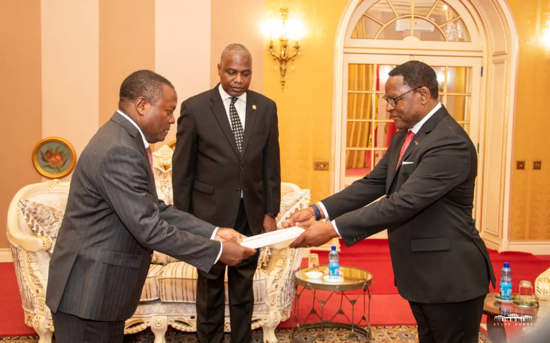 Amb. Ruhomvyumworo présente ses Lettres de Créances à S.E Chakwera , Président du Malawi.