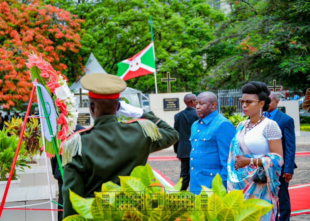 Ce vendredi, différentes hautes autorités du pays, dont le couple présidentiel ( S.E. Ndayubaha Angéline, Première Dame du Burundi, et S.E. Ndayishimiye Evariste – Général Major – Président du Burundi ) , étaient à la messe à la cathédrale Regina Mundi à Bujumbura, venus soutenir les familles du héros national Feu Ndadaye Melchior et de tous ces autres compagnons martyrs de la démocratie. Poursuivant par la suite les cérémonies au mausolée en mémoire du héros de la démocratie burundaise, par le recueillement et le dépôt des gerbes de fleurs…