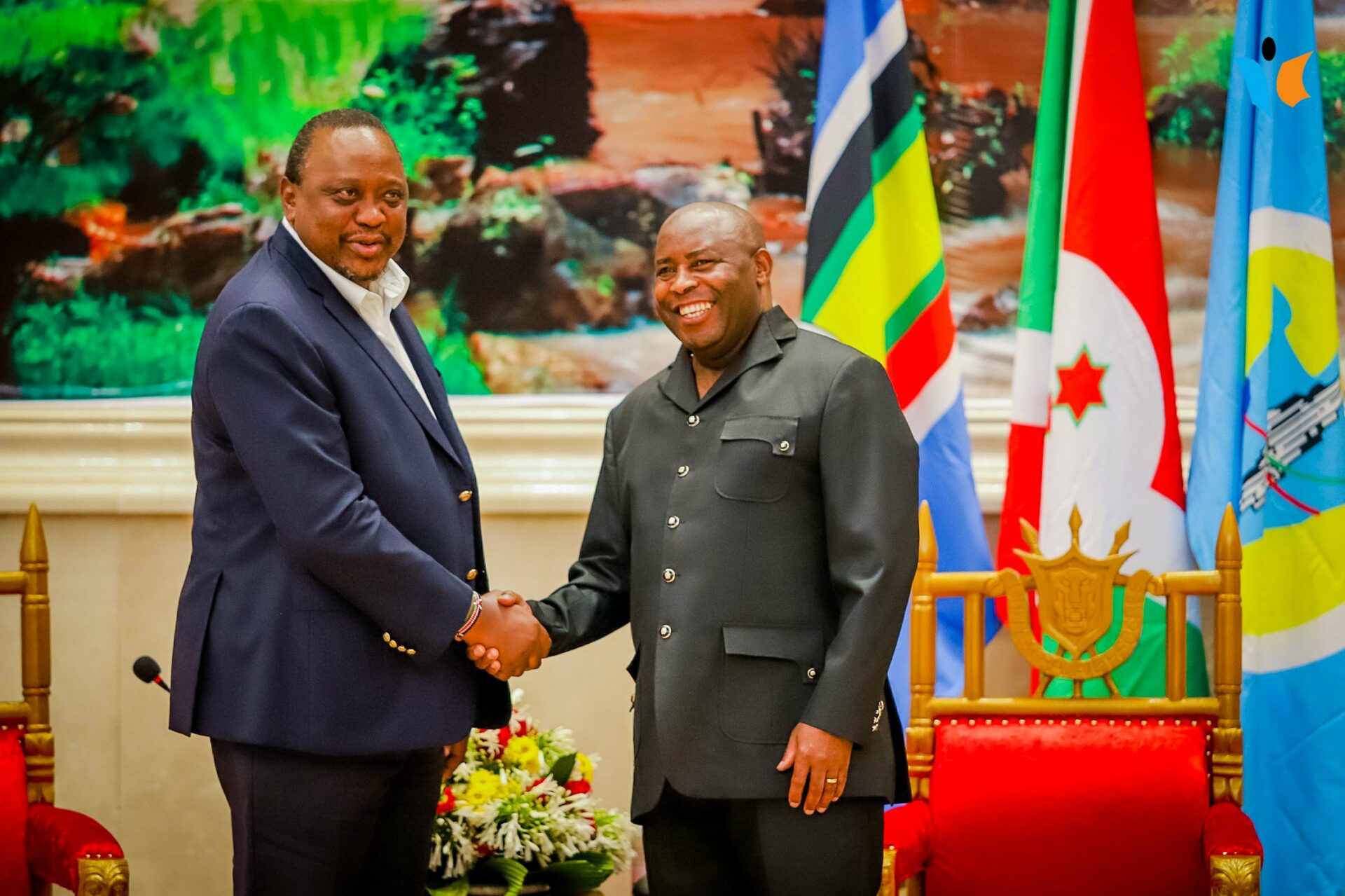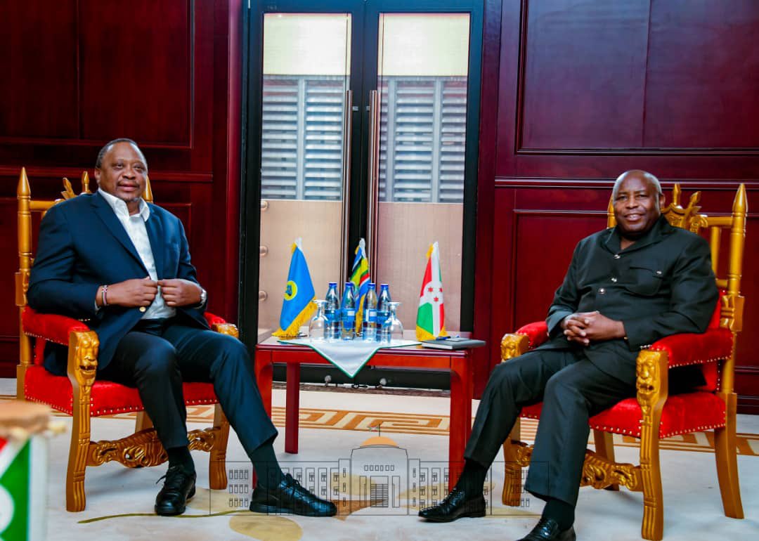 Ce vendredi, S.E. Ndayishimiye Evariste ( Général Major ), Président du Burundi, recevait la visite du Fils du héros panafricain Feu Jomo Kenyatta , S.E. Uhuru Kenyatta, ancien Président du Kenya et Facilitateur EAC du processus de paix en RDC.