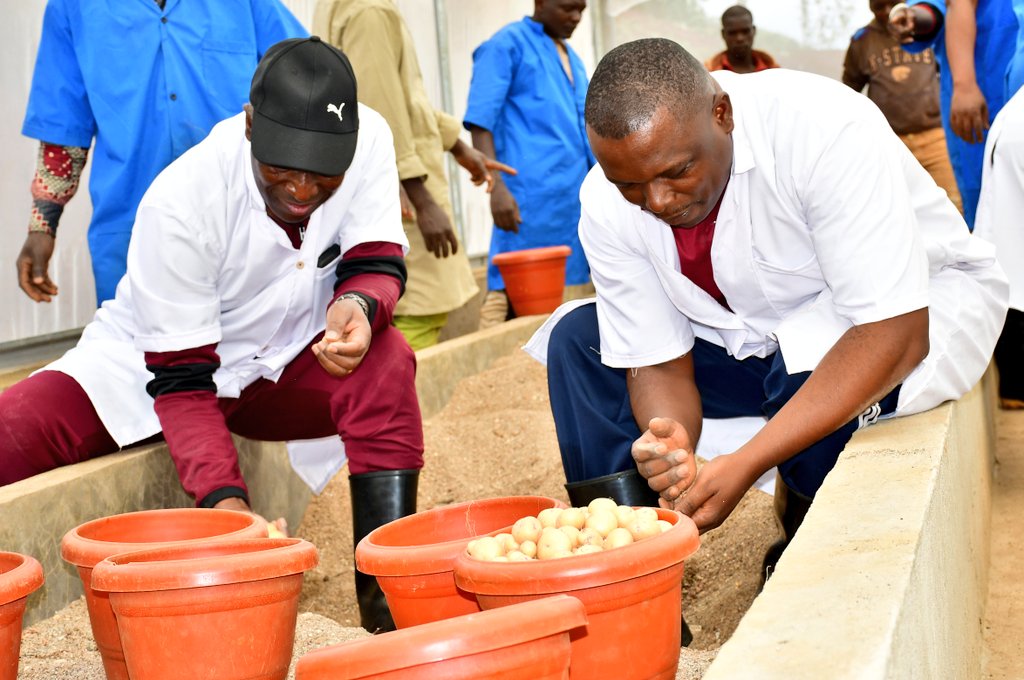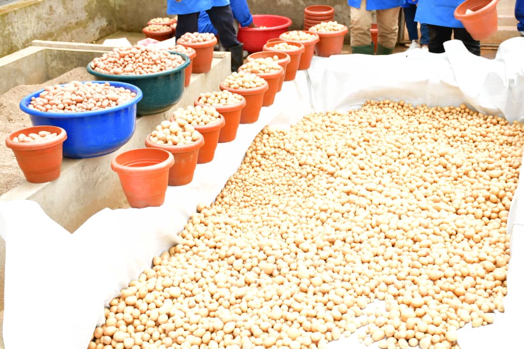 Kayanza ( Commune Muruta ),21/11/2022 – Cadrant avec la Politique Economique des Barundi, lundi, CPC Ndirakobuca Gervais, 1er Ministre du Burundi, participait à la récolte des mini-tubercules de pomme de terre sevrés dans le serre des enceintes de l’Institut des Sciences Agronomiques du Burundi de Munanira