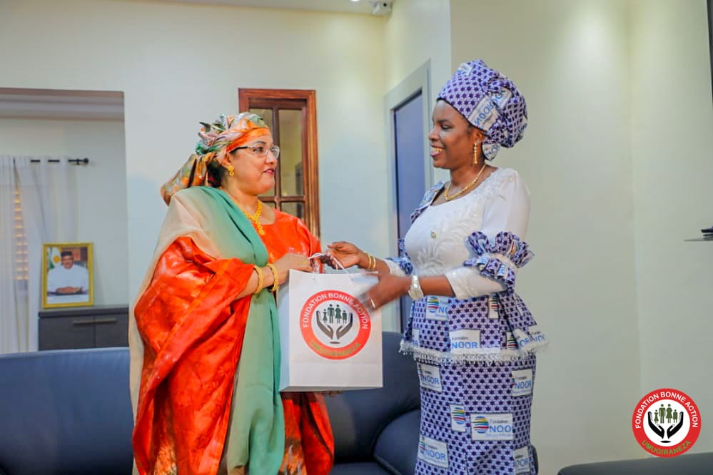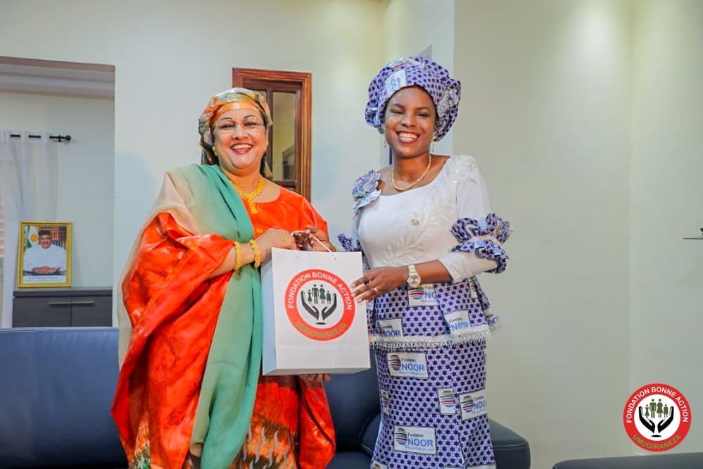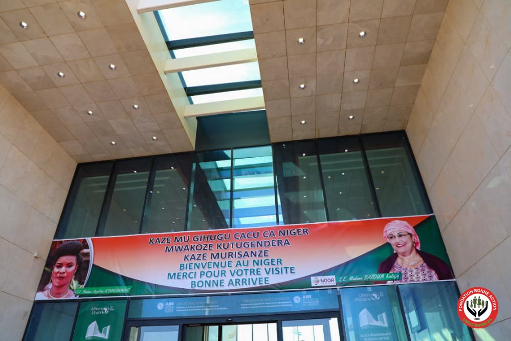 Par la suite, visitant un centre de traitement du cancer et d’un orphelinat fondé par S.E. Hadidja Bazoum, Première Dame du Niger, soit la « Fondation Noor »où S.E. Ndayubaha Angeline, Première Dame du Burundi, a offert une enveloppe au nom de la Fondation Bonne Action Umugira Neza.