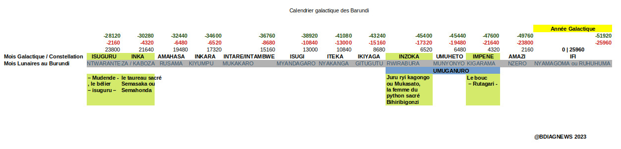 Comme l’on vient de le voir, il existait au niveau de LA COSMOLOGIE DES BARUNDI relatif au TEMPS, un CALENDRIER ASTROLOGIQUE ou GALACTIQUE DES BARUNDI.