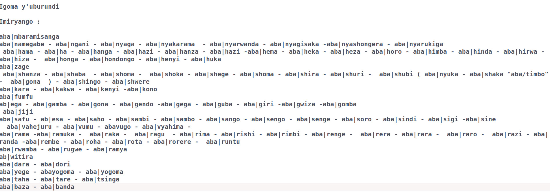 Voici quelques (imi)ryango , pas toutes, que l’on retrouve à -ingoma y’uburundi – :