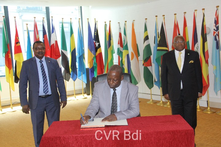Bruxelles, 29/06/2023 – S’inscrivant dans la lignée des politiques étrangère et judiciaire du Burundi, le président de la Commission Vérité Réconciliation (CVR) du pays, le très respectable Monsieur Ndayicariye Pierre Claver, a été reçu mercredi par M. Chikotti, Secrétaire Général de l’OEACP-Afrique, Caraïbes et Pacifique, en présence de l’ambassadeur du Burundi en Belgique, le très estimé Amb. Ntahiraja Thérence. L’objectif de cette rencontre était de présenter les missions et les résultats déjà obtenus par la CVR du Burundi entre 2018 et 2022, soulignant l’importance de la justice transitionnelle en Afrique. À l’issue de ces échanges, M. Ndayicariye a inscrit un message dans le livre d’or du Secrétariat de l’Organisation des États d’Afrique, des Caraïbes et du Pacifique (OEACP). M. Chikotti a exprimé sa grande appréciation des efforts déployés par le Burundi en matière de justice transitionnelle et de recherche de la vérité pour la réconciliation des Burundais.
