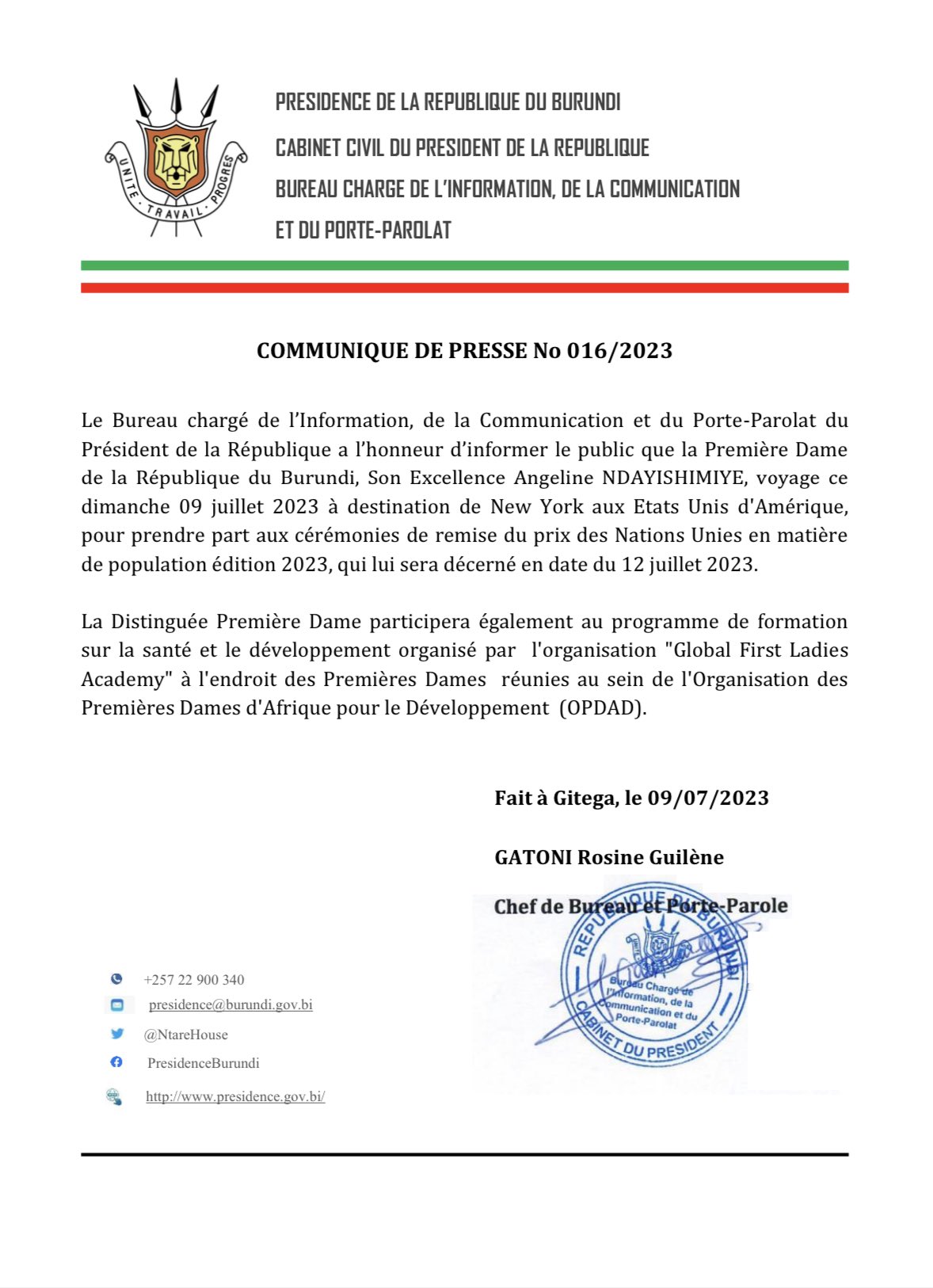 New York (ONU), 12/07/2023 – Conformément aux politiques étrangère et socioéconomique du Burundi, la Première Dame du Burundi, S.E. Ndayubaha Angéline, a été distinguée par les Nations Unies. Elle a reçu le Prix 2023 du Fonds des Nations Unies pour la population (UNFPA) en reconnaissance de sa contribution à la population, au développement et à la santé reproductive. Depuis 2021 [1] jusqu’en 2023 [2], le Burundi s’est engagé dans les méandres de la GUAN [3] (Globalisation Unipolaire Américaine Néolibérale), lui ouvrant dangereusement les portes de sa planification [4] …
