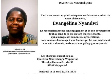 La famille invite amis et proches à se joindre à eux pour rendre hommage à la mémoire de Madame Nyandwi. Pour tout soutien ou information, les contacts sont disponibles, notamment celui de sa fille, Dr Kariyo-Grâce Nyandwi.