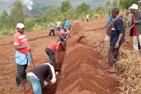 MUYINGA, 29/10/2020 – M. MISAGO Amédée, Administrateur de la Commune MUYINGA, était aux TRAVAUX DE DEVELOPPEMENT COMMUNAUTAIRE (TDC), aux côtés des citoyens de la colline KIBOGOYE. Consistant à tracer les courbes de niveau. Ainsi, chaque jeudi, les citoyens de la localité qui le souhaitent participent au projet environnemental – EWE BURUNDI URAMBAYE –