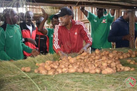 Dans son allocution à l’occasion de la récolte de la pomme de terre par la CIAP-Ngozi, le Président du sénat Emmanuel Sinzohagera a félicité les membres de la coopérative CIAP- Ngozi qui a su valoriser une terre qui semblait stérile et qui a servi de modèle à la population environnante. Il a rappelé par la même occasion que ce sont les forces vives de la nation qui sont appelées à bâtir le pays et à assurer la croissance économique du Burundi.