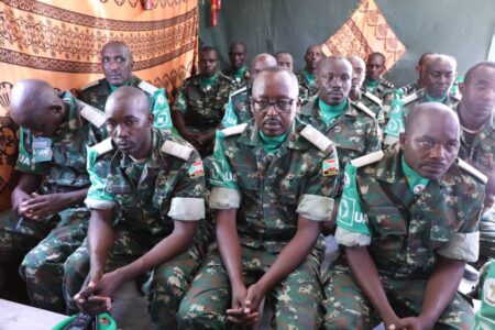 Jeudi et vendredi, le Lieutenant Général Niyongabo Prime, Chef d’Etat Major de la FDNB , visitait les troupes burundaises de l’AMISOM/ATMIS. Après avoir tenu une minute de silence envers les soldats Barundi tombés au cours de cette mission de paix, il s’est entretenu avec les officiers en leur recommandant de mener des combats contre les Al shabaabs partout où ils étaient retranchés. Les encourageant à continuer la noble mission d’aider le peuple somalien à retrouver la paix chez eux.