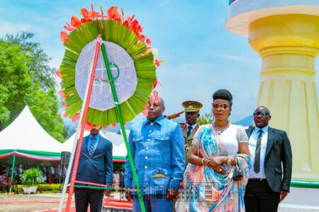 Ce vendredi, différentes hautes autorités du pays, dont le couple présidentiel ( S.E. Ndayubaha Angéline, Première Dame du Burundi, et S.E. Ndayishimiye Evariste – Général Major – Président du Burundi ) , étaient à la messe à la cathédrale Regina Mundi à Bujumbura, venus soutenir les familles du héros national Feu Ndadaye Melchior et de tous ces autres compagnons martyrs de la démocratie. Poursuivant par la suite les cérémonies au mausolée en mémoire du héros de la démocratie burundaise, par le recueillement et le dépôt des gerbes de fleurs…