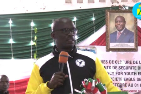 Ce lundi, Hon. Ndikuriyo Révérien, Président Fondateur de la Fondation Pax Burundi ( Secrétaire général du parti CNDD-FDD, 1ère formation politique du Burundi) , un amoureux du sport, était à la cérémonie de clôture de la formation des agents de sécurité de l’agence -agency for youth employement – formés par la société « Eagle Security Services » ( NB: Eagle en référence à l’équipe locale de football – Aigle Noir FC de Makamba )… Pendant 6 mois, des jeunes Barundi venus de tout le Burundi ( des 18 provinces ) ont été formés à devenir des agents de sécurité.