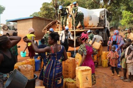 La distribution de l’eau est une activité qui contribue à l’exécution du mandat de la MINUSCA. Cette action a été entreprise par les casques bleus burundais de la Minusca dans le cadre des actions civilo-militaires. Doguela Samon Ephrem, un des Agents de Liaison Communautaires (CLA) opérant dans la sous-préfecture de Damara qui a accompagné ces casques bleus dans cette action, s’est dit satisfait de la bonne collaboration entre les casques bleus burundais de la Minusca et la population d’une part, entre ces casques bleus et les CLA d’autres part. Il a fait savoir que les CLA œuvrant dans ce secteur seront toujours aux cotés des militaires burundais de la Minusca dans toutes les activités allant dans le sens de soulager les souffrances qui touchent de près ou de loin à la vie quotidienne des populations.
