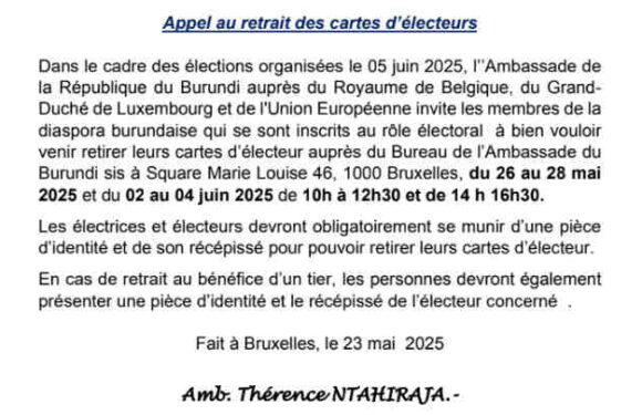 On : --L’Ambassade du Burundi à Bruxelles rend hommage à Nitunga Sophonie, célébrant son engagement, sa promotion et son remarquable parcours diplomatique. Bruxelles (Belgique), 28/11/2025 — Fidèle à la tradition diplomatique des Barundi, une ambiance chaleureuse régnait ce soir-là dans les locaux de l’Ambassade….