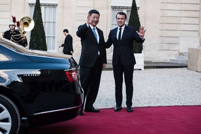 Le Président de la République populaire de Chine, Xi Jinping, est reçu au palais de l’Elysée, le 25 mars 2019. Ici raccompagné à sa voiture par le Président de la République, Emmanuel Macron. Julien Muguet / Julien Muguet