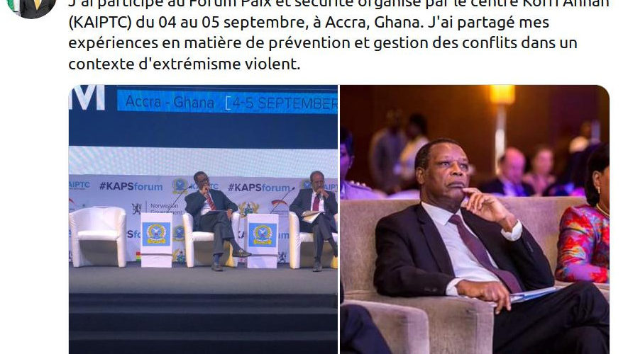 “Du 04 au 05 septembre, j’ai pris part au – Forum paix et sécurite dans un contexte d’extrémisme violent – , organisé par KAIPTC, à Accra. ça a été l’occasion d’échanger avec les ex Chefs d’Etats présents à cette importante rencontre“.
