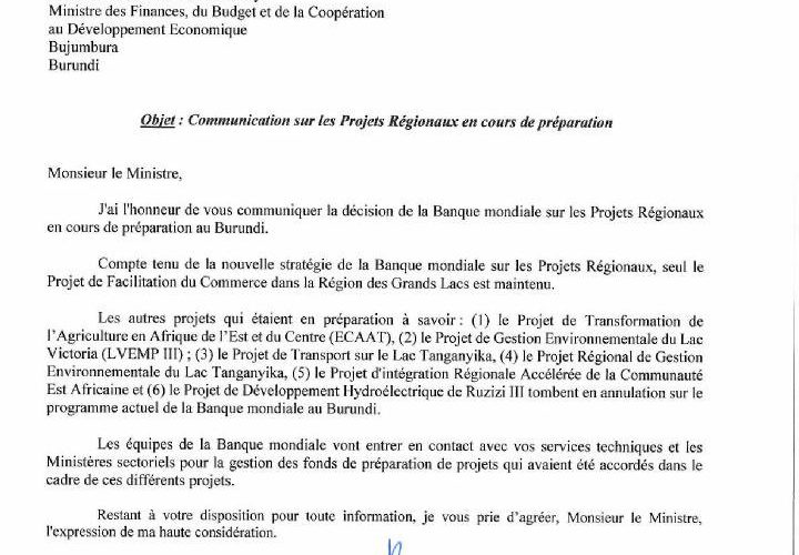GLOBALISATION, SOCIO-ECONOMIQUE, DEFENSE – Bujumbura, 5/09/2019 – Les financements de tous les projets du Burundi, surtout ceux permettant d’ aider le pays à progresser au niveau socio-économique et industriel, viennent d’être annulés à la Banque Mondiale par M. Christophe Carret, un Français…