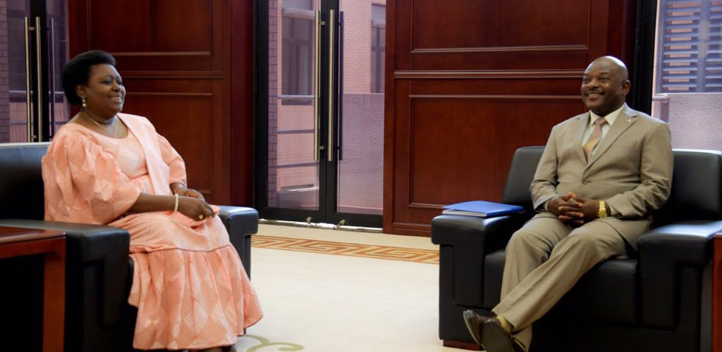 HISTOIRE, PRESIDENCE – BUJUMBURA ( NTARE RUSHATSI HOUSE ), 15/10/2019 – S.E. Pierre NKURUNZIZA, Président de la République du Burundi, a reçu en audience Mme NDADAYE Laurence, veuve du héros national burundais Feu Melchior NDADAYE, dans le cadre de la commémoration du 26ème anniversaire de l’assassinat de son mari.