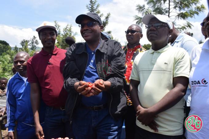 Le Ministre de l’environnement, agriculture et élevage Déo Guide Rurema en compagnie du Directeur Général de l’office de développement du Café du Burundi ODECA Emmanuel Niyungeko, a procédé jeudi 20 février 2020 au lancement officiel de la campagne café, édition 2020-2021 sur la colline Muzenga, zone Buhayira en commune Murwi de la province de Cibitoke.