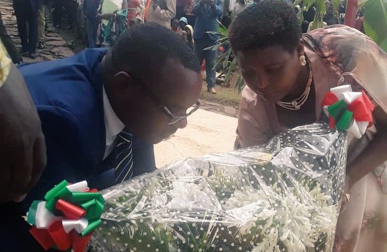 MURAMVYA , 13/10/2020 – M. NZAMBIMANA Diomède, Gouverneur de la Province MURAMVYA, était à la commémoration du 59 ème anniversaire de l’assassinat du héros de l’indépendance du Burundi : MUGANWA Feu RWAGASORE Louis, Héros national. Étaient présents au dépôt des gerbes de fleurs à la place de l’UNITE, de très nombreux citoyens autour des hautes personnalités de MURAMVYA.