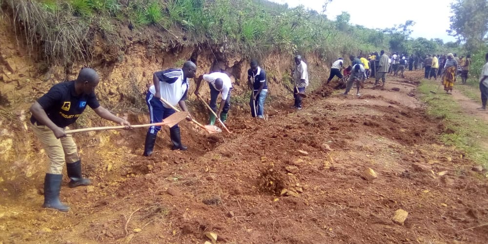 Tous avec une pelle en main. Consistant à curer les caniveaux sur la route BUTEZI- RUYIGI en direction de NYAMIBU vers la rivière SANZU.
