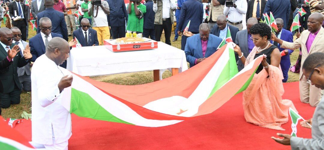 GITEGA ( Stade de MUTAHO ), 31/12/2020 – Dans la Tradition des BARUNDI, cette période était l’équivalent de LA FIN DE L’UMUGANURO [1] … La famille présidentielle, comme autrefois aurait fait la famille du MWAMI DES BARUNDI, a clôturé la prière d’action de grâce. Marquée par la prière pour la Nation faite par S.E NDAYISHIMIYE Evariste ( Général Major ),entouré de plusieurs Serviteurs d’« IMANA »[2]. Réalisée, comme une tradition , initiée par S.E. Feu NKURUNZIZA Pierre, ancien Chef d’ETAT du BURUNDI, afin de mettre le BURUNDI – INGOMA Y’UBURUNDI – sous la protection et la bénédiction du tout puissant –IMANA– au cours l’année 2021. La louange à IMANA, en fin d’UMUGANURO, destinée au tout puissant est de donner au BURUNDI et aux BARUNDI une très bonne PRODUCTION pour 2021. Permettant à tous les BARUNDI ou tous LES – IMIRYANGO – BARUNDI, en bonne santé, grâce à une bonne POLITIQUE DE REDISTRIBUTION JUSTE, de bien BOIRE et de bien MANGER.