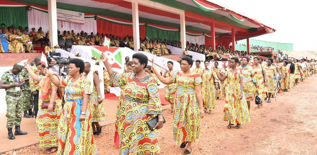 A cette occasion, les femmes militaires et policières, ainsi que les femmes de toutes les corporations ont défilé . S.E. NDAYISHIMIYE Evariste, en a profité pour certifier un homme et 17 FEMMES dont son épouse, pour leur bravoure et leur leadership dans différents domaines de la vie BURUNDAISE.