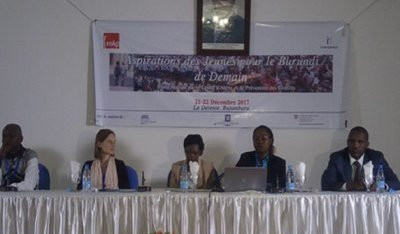 BUJUMBURA, 21 déc (ABP) – Le Centre d’alerte et de Prévention des conflits (CENAP) en partenariat avec Interpeace a organisé jeudi le 21 décembre 2017 à Bujumbura, un forum national de deux jours consacré à la présentation des résultats de la recherche sur les aspirations des jeunes pour le Burundi de demain, a-t-on constaté.
