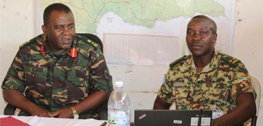Le Général de brigade Fadil Omari Nondo commandant du secteur centre, a été accueilli par le commandant du contingent burundais lieutenant-colonel Ndayizeye Jean Baptiste, le commandant détachement de Dékoa et certains officiers de l’état major du contingent. Après lui avoir présenté la situation sécuritaire, l’état des lieux, les opérations courantes et les défis ; il a pris le temps de prononcer son allocution. Il a d’abord remercié tous les militaires burundais de leur dévouement au travail et leur discipline. Il leur a rappelé les principaux ennemis de leur mission dont en premier lieu l’abus et l’exploitation sexuelle, les rebelles et la malaria qui est courante sur le sol de la RCA. Depuis mon arrivée ici, j’ai entendu de bonnes nouvelles de la part des militaires burundais et je suis fier de vous avoir dans mon secteur de responsabilité » a martelé le comandant secteur Général de brigade Fadil Omari Nondo.
