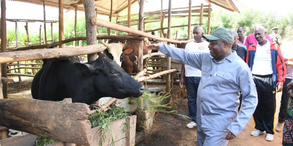 BUBANZA ( Commune MPANDA ), 3/06/2021 – S.E. NDAYISHIMIYE Evariste ( Général Major ), Président du BURUNDI, visitait une exploitation agropastorale, comprenant un champ d’arbres fruitiers et un élevage, appartenant à des natifs de MPANDA, rassemblés en coopérative.
