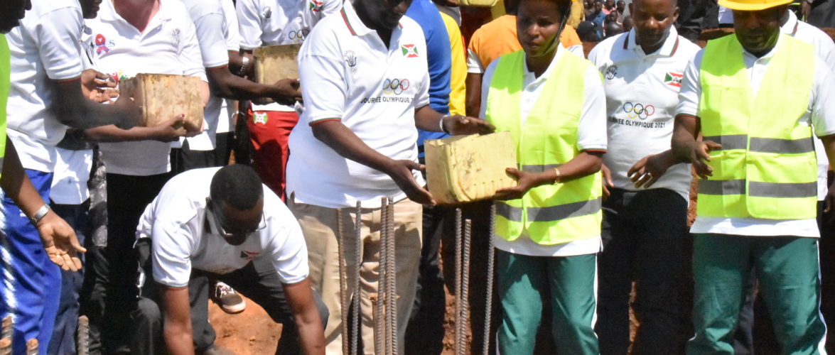 BURURI ( Commune MUGAMBA ), 26/06/2021 – Reçu par M. NTAHOMBAYE Venuste, Administrateur communal de MUGAMBA, et M. BANDENZAMASO Léonidas ( Colonel ), Gouverneur de la province BURURI. A l’occasion de la célébration de la journée nationale olympique, S.E. NDAYISHIMIYE Evariste ( Général Major), Président du BURUNDI, accompagné de son épouse S.E. NDAYUBAHA Angéline , Première Dame du BURUNDI, participait aux TRAVAUX DE DEVELOPPEMENT COMMUNAUTAIRE [ TDC – http://bdiagnews.com/TDC ]. Consistant à construire LE CENTRE SPORTIF à MUYANGE, après avoir posé de la première pierre de cette infrastructure, et offert 300 sacs de ciment comme contribution.