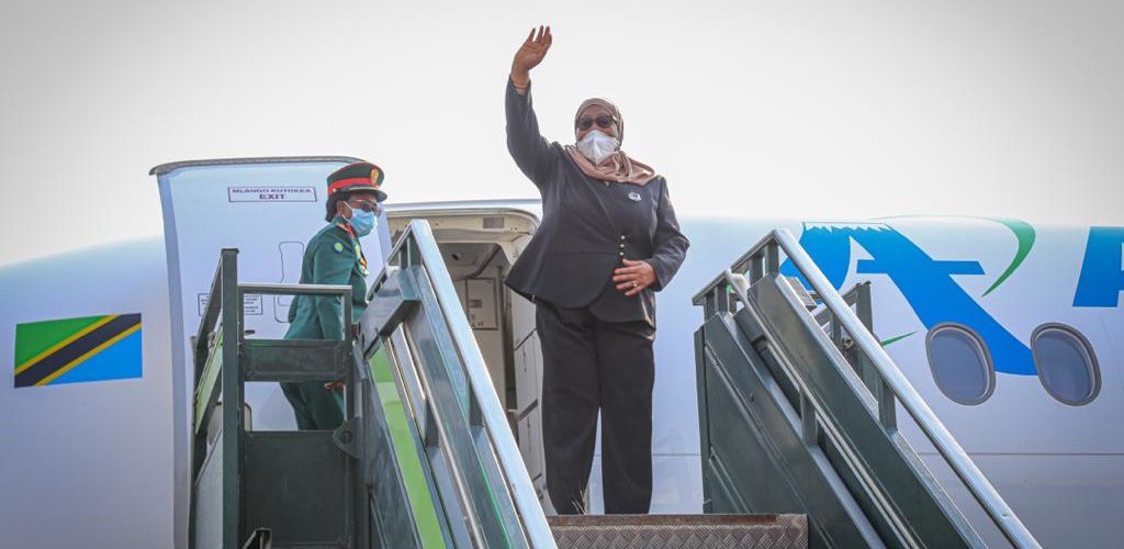 BUJUMBURA ( Aéroport NDADAYE MELCHIOR ), 17/07/2021 – Accompagnée par S.E. NDAYISHIMIYE Evariste ( Général Major ), Président du BURUNDI. S.E. SULUHU Samia Hassan, Présidente de LA TANZANIE, a clôturé sa visite d’État au BURUNDI. Saluant un bon nombre de personnalités BARUNDI alignées en file et présentées par le chef d’état DES BARUNDI.