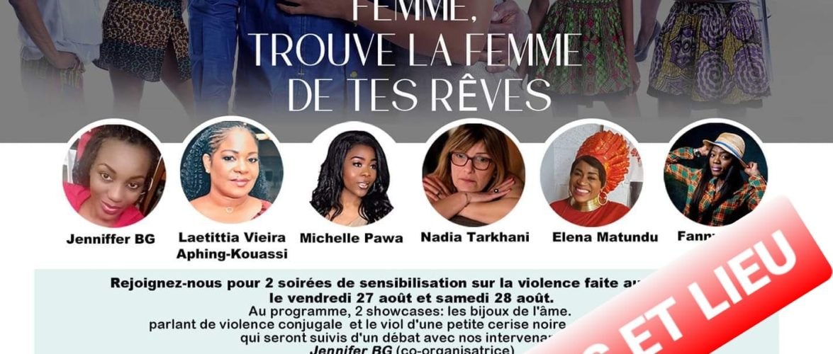 BRUXELLES, 26/08/2021 – ATTENTION ATTENTION … CHANGEMENT DE DATES ET LIEU Mme KAYISHA RUGURIKA Christine, connue pour la réalisation de nombreuses pièces de théâtre tel –PAS UN REGARD EN ARRIERE – et de la Série ( SITCOM ) – LES BIJOUX DE L’ÂME TV show – , vous invite , à la salle ‘Nelson Mandela ‘ au SLEEP WELL, rue du Damier 23, 1000 bxl ( à 5mns de Rogier) [ et non plus à l’Espace Ochola 261 chaussée de wavre 1050 Bruxelles ], aux soirées spectacle/ débat ( vendredi 10 et samedi 11 septembre 2021 ) [ et non plus le 27 et 28 août 2021 ] et/ou les ateliers de l’après-midi ( 10 et 11 septembre 2021 ) [ et non plus le 27 et 28 août 2021 ] – « Les Bijoux de l’âme : Femme, trouve la Femme de tes rêves » – , sensibilisant sur les violences faites aux femmes. Les personnes qui avaient déjà réservé pour le mois d’août 2021 leur place vont recevoir un émail pour un report ou un remboursement.