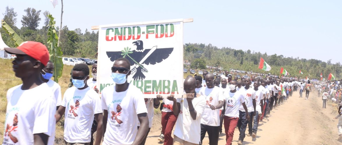 MUYINGA, 28/08/2021 – En présence de S.E. NDAYISHIMIYE Evariste (Général Major), Chef d’Etat du BURUNDI et Président du Conseil des Sages du CNDD-FDD. Le CNDD-FDD, 1ère force politique du BURUNDI, célèbre L’ IMBONERAKURE DAY 2021. S’agissant d’une journée dédiée à LA JEUNESSE DU CNDD-FDD. Accueillant de nombreuses délégations politiques étrangères. Les IMBONERAKURE de chaque province du pays ont défilé devant les invités venus les encourager.