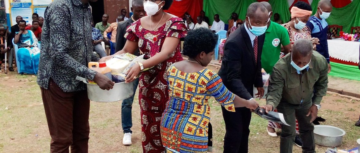 Reçues par M. NITUNGA Gratien, Administrateur communal de GISAGARA . Accompagnée de Mme NIJIMBERE Marie Chantal, Ministre burundaise de la Communication,des TI et des Médias. Mme SABUSHIMIKE Imelde, Ministre burundaise de la Solidarité Nationale, organisait une activité. Venant au secours de 29 familles. Ayant été victimes de l’ effondrement d’une église en cours de construction dans la localité. Donnant à chaque famille : 1 sac de farine de maïs ; 1 couverture; 1 pagne; 1 houe; 1 carton de savons de lavage; 1 casserole; et 5l d’ huile de palme. Offrant aussi 1 grand sac de riz partagé par 3 familles. Remerciant fortement les familles avoisinantes pour leur esprit de solidarité.