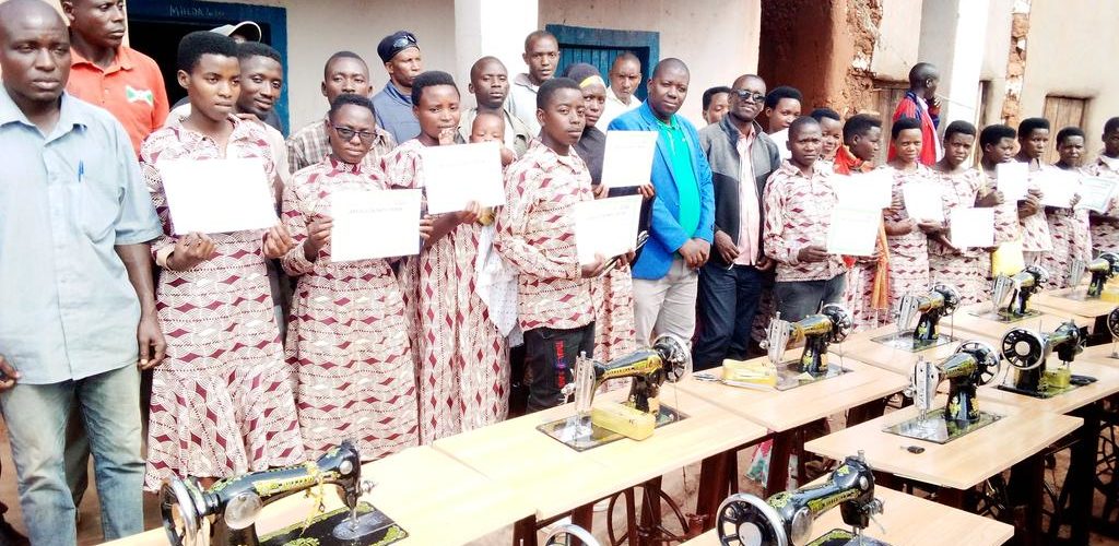 KIRUNDO ( Commune BUSONI ), 30/09/2021 – L’ONGe américaine, évangéliste, –Food for the Hungry – [ https://www.fh.org/ ] finissait une formation de couture à 15 jeunes. Leur offrant leurs certificats et une machine à coudre à chacun.