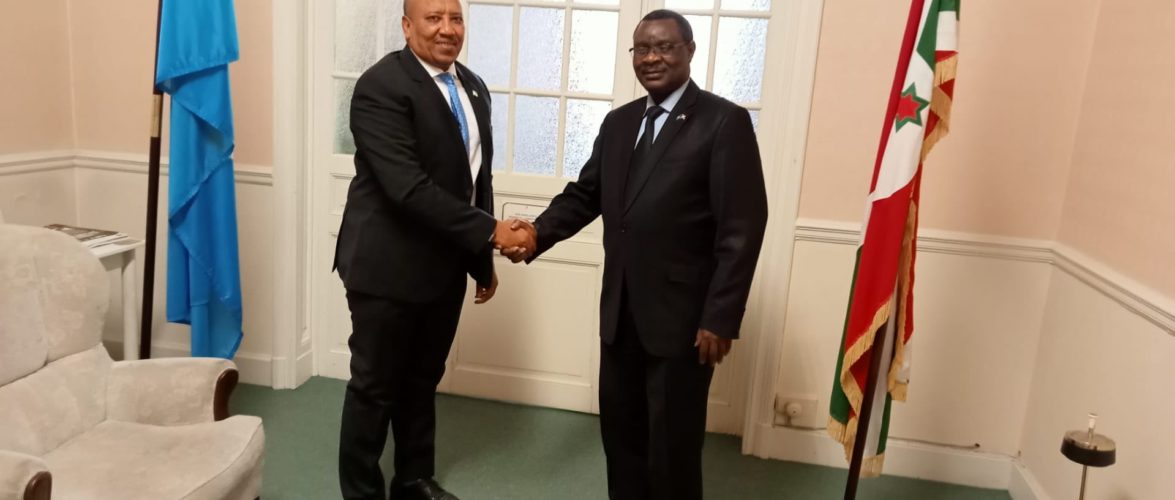 Amb. NTaHiRaJa Thérence, Ambassadeur du BuRuNDi en BELGIQUE, recevait chaleureusement et fraternellement, dans ses locaux , Amb. DeLeiTa ADeN, nouvel Ambassadeur de DJiBouTi en BELGIQUE. Lui souhaitant la bienvenue dans sa nouvelle fonction à Bruxelles, capitale de l’Union Européenne (UE). Commentant rapidement l’actualité de KaMa et les bouleversements observés en ce moment… Puis échangeant ensemble sur le renforcement de la coopération entre le BuRuNDi et DJiBouTi, notamment au niveau de leur mission diplomatique respective.