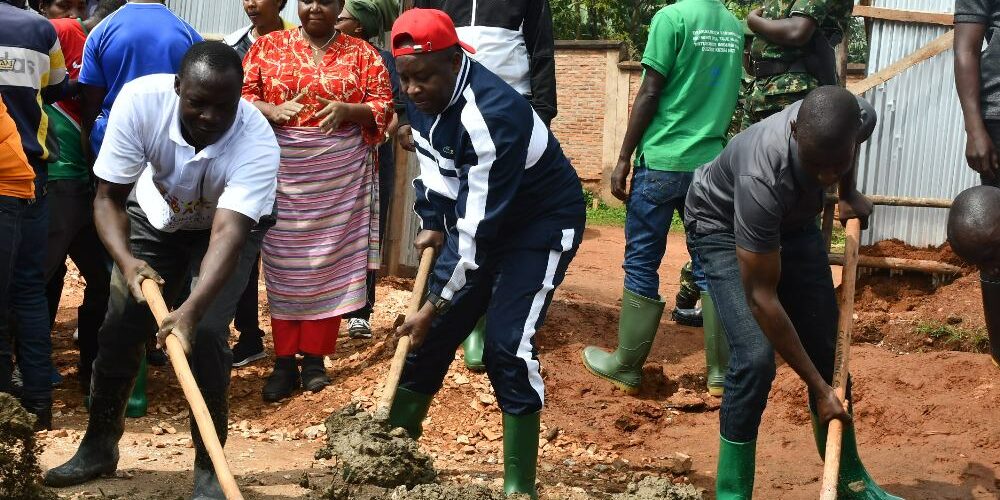 S.E. NDaYiSHiMiYe Evariste ( Général Major ), Président du BuRuNDi, s’est joint aux TDC auprès des citoyens locaux consistant à construire un terrain moderne de volley-ball.