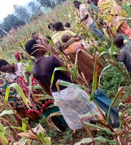 Les cultivateurs de la coopérative VASO récoltent leurs maïs en colline KaVoMo à KiRuNDo