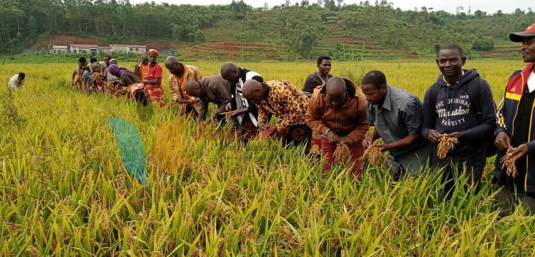 Lors du lancement à Ngozi de la campagne de récolte de la nouvelle variété de riz hybride à haut rendement ( ~ 7 tonnes/ha ), lundi, M. NTACONSANZE Emmanuel, Gouverneur de NGOZI, encourageait la population locale à mettre les terres cultivables en commun pour augmenter la production agricole.