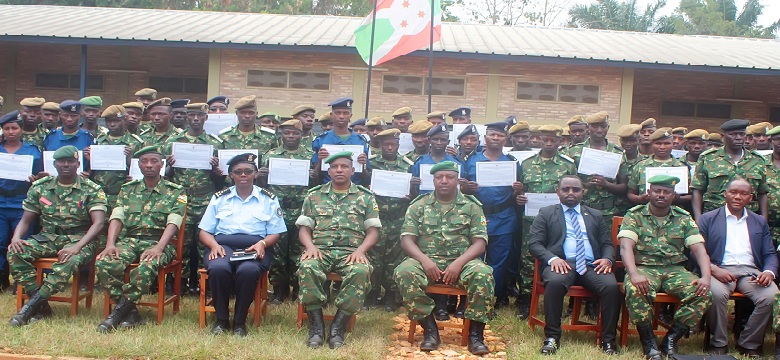 Le Général de Brigade Léonidas Niyungeko, chef du service chargé de la formation à la FDNB qui avait représenté le chef de la FDNB dans les cérémonies de clôture a félicité les lauréats. Il les a exhortés à être des modèles du professionnalisme dans l’application des connaissances acquises partout où ils seront appelés à travailler.